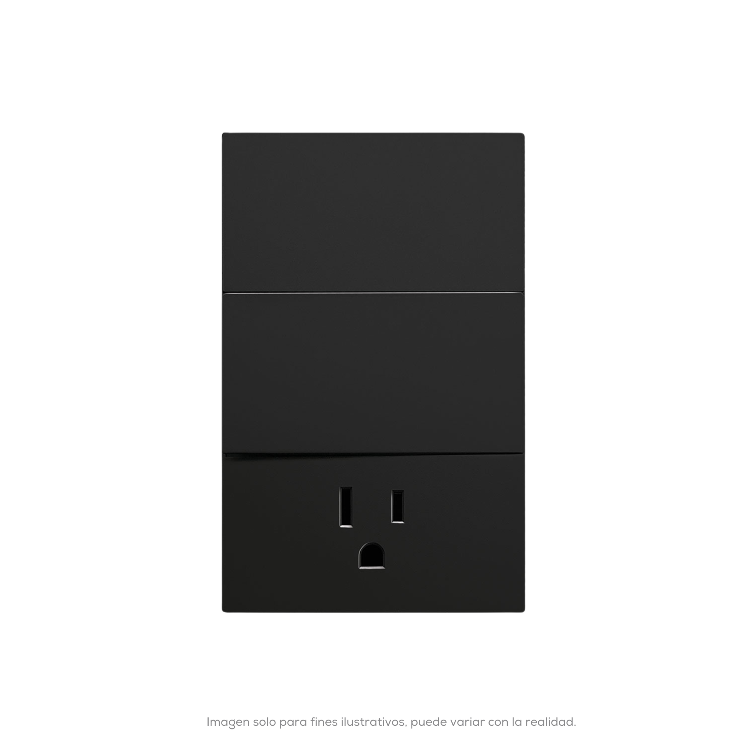 PLACA LUXURY CONTACTO SENCILLO Y APAGADOR DE 2 INTERRUPTORES 3 VIAS 90-277VCA COLOR NEGRO 74X112MM SKIN FEEL